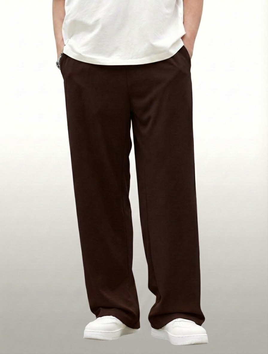 The straight fit paired with a baggy style creates a relaxed silhouette that allows easy movement while maintaining a clean casual look. Ideal for lounging travel or casual outings, this sweatpant blends comfort with effortless style. The chocolate brown shade adds warmth and depth, making it easy to pair with T shirts hoodies or sweatshirts.