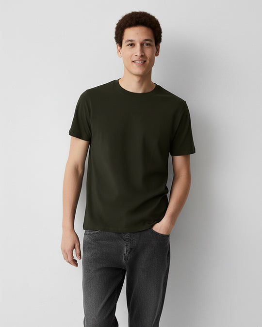 Crafted from 100% premium cotton, delicately balanced at 180 GSM for a feather-light yet structured feel. The fabric breathes effortlessly, offering a smooth touch that moves with you through every season.